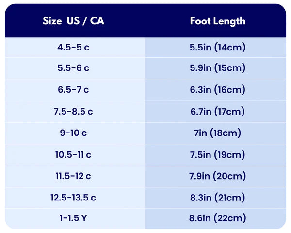 Please measure your child's foot and choose the size that is closest to their foot-lenght